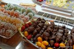 Tienen cantidad de dulces navideños artesanales, desde los clásicos turrones y mazapanes hasta frutas escarchadas, fondues de frutas hechas en el momento, todo tipo de frutos secos garrapiñados, grandes hogazas de pan, hornazos, empanadas, frutas desecadas, pasteles turcos, chocolate con churros, en fin… ¡¡qué hambre!! Están hasta el 6 de enero.