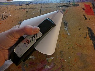Dobla la cartulina para que tome forma de cono y grápala.