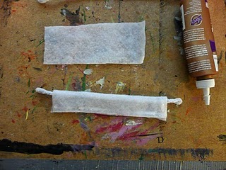 Corta otra pieza de tela de 7.6 cm x 17.8 cm, apoya el limpia-pipas en el centro y añade pegamento al borde de la tela.