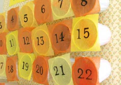 Dentro de las propuestas low-cost para calendarios de adviento, y que pueden convertirse en actividades para los más pequeños, tenemos este calendario de adviento realizado con envases de yogur y papel de colores.
