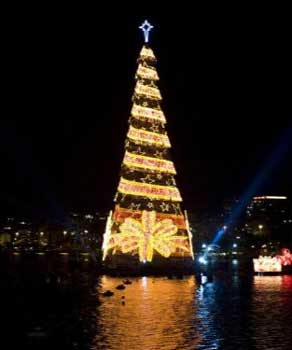 Iluminado el árbol de Navidad flotante más grande del mundo