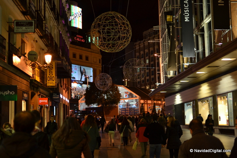 Plaza de Callao al fondo con juguetería y mini pista de patinaje