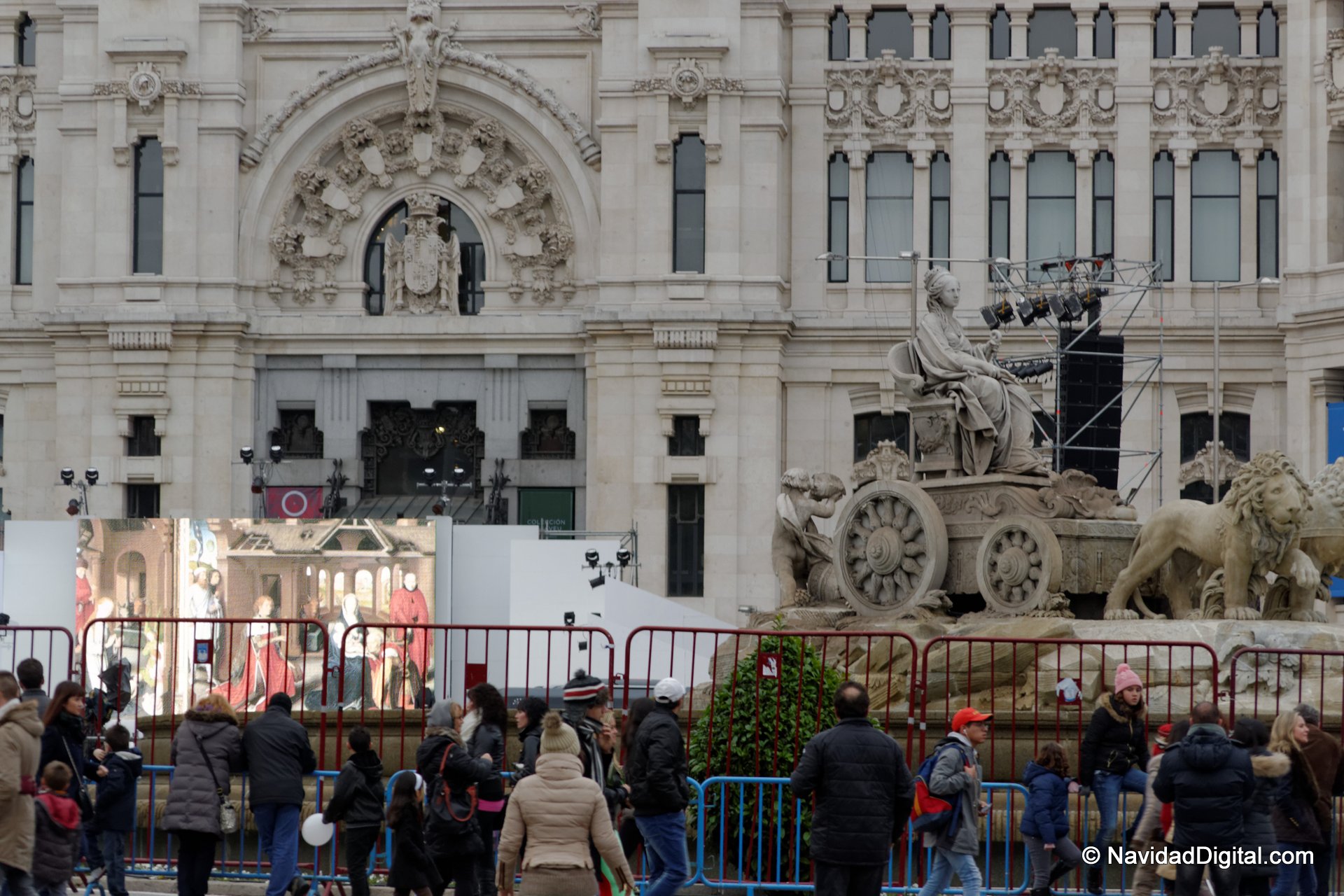Mientras, en la plaza presidida por la fuente de Cibeles, se amenizaba a los que iban llegando con villancicos e imágenes navideñas.