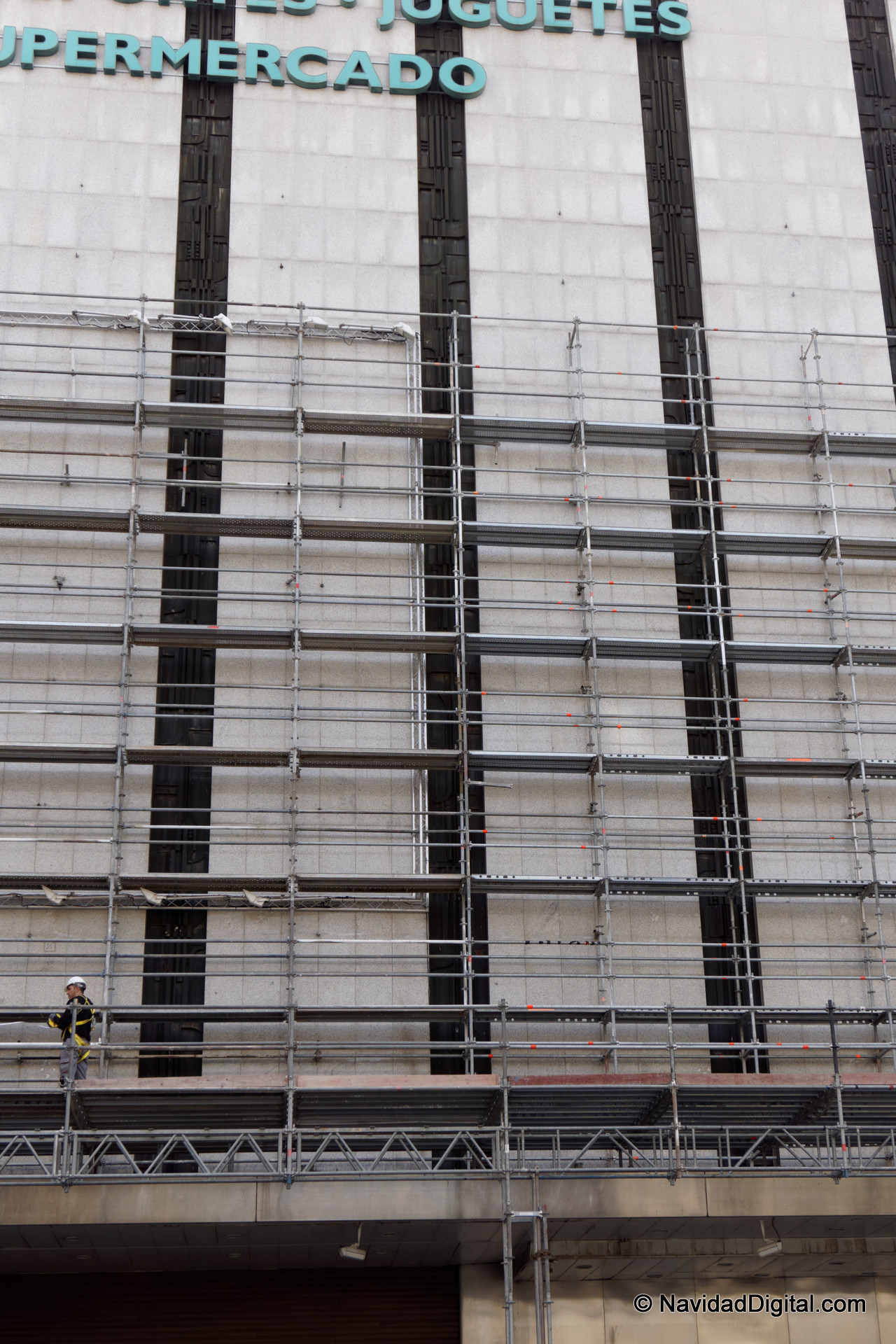 Esta fachada es de unos archiconocidos grandes almacenes, y estos andamios los están poniendo hoy mismo para albergar el tradicional espectáculo navideño con figuras gigantes Cortylandia 2014-2015. ¿Cuál será el tema de este año?