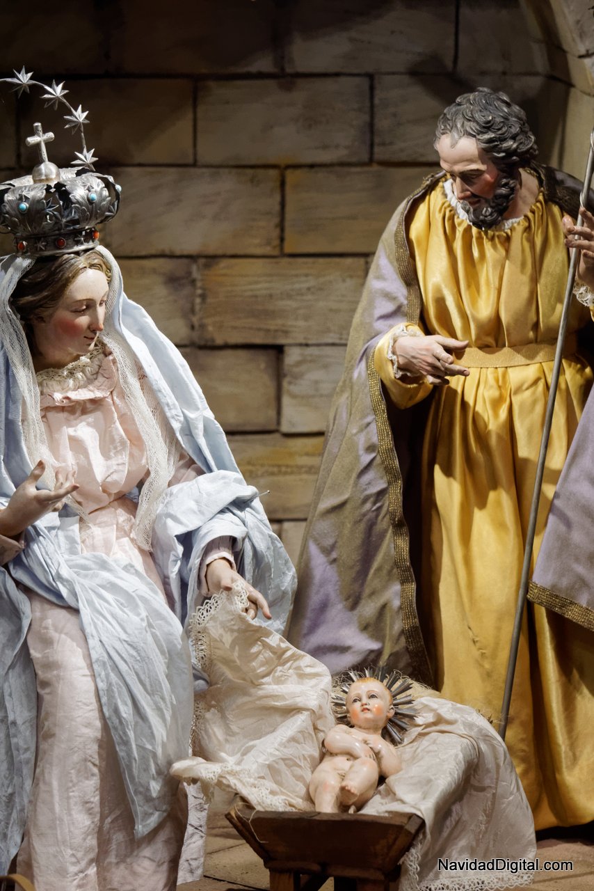 El Belén expuesto ha ido creciendo a lo largo de los años con nuevas piezas, el Misterio es de 1785 (foto a continuación), en 1786 se incorporó el cortejo de los Reyes Magos y en 1790 se encargaron cien piezas más…