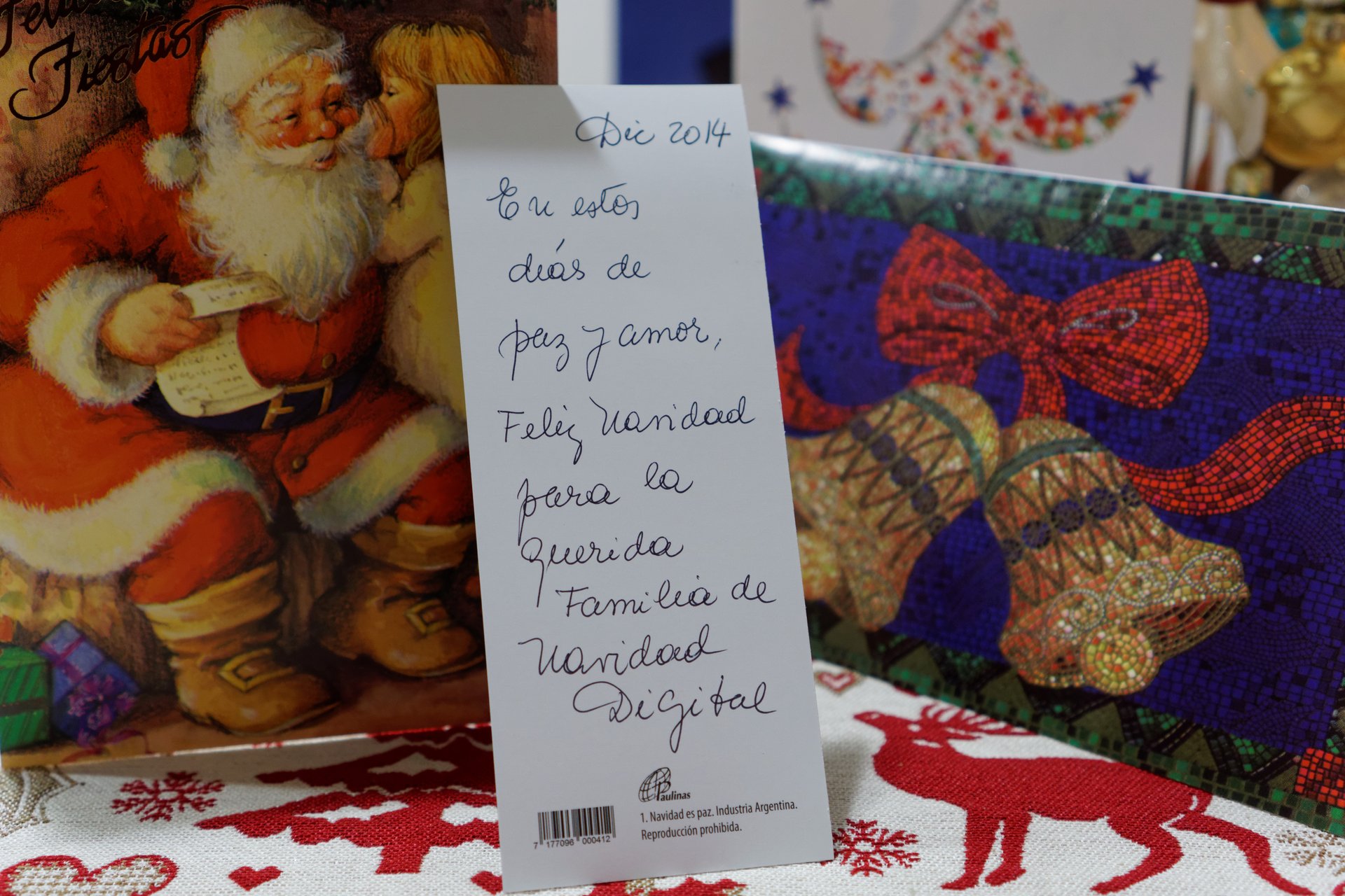 Las fotos están en alta definición, si lo veis en ordenador en una buena pantalla será casi como verlas a tamaño real. He dado prioridad a que puedan verse los sellos y los matasellos, y en las tarjetas la portada y el interior con partes manuscritas o aquellas que mencionen explícitamente Navidad Digital. No están en ningún orden concreto, aunque siempre en cada tarjeta primero se ve el sobre, luego la portada y luego el interior con los deseos que expresen. Como si la hubieras recibido.