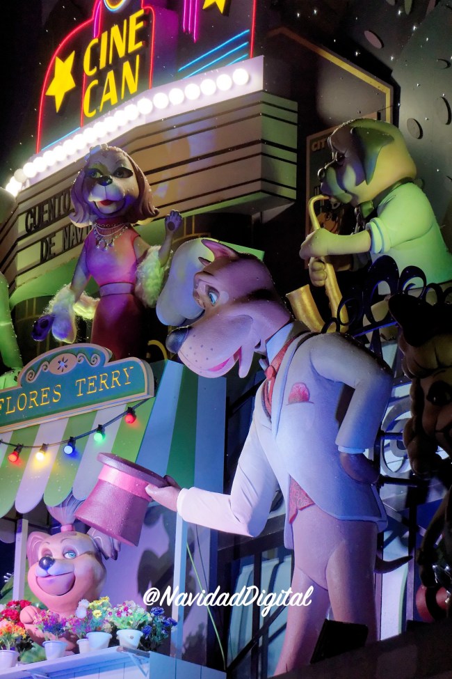 Dejamos atrás los adorables muñecos de nieve del año pasado, en su lugar los amantes de los perros están de enhorabuena porque la temática de este año va dedicada a ellos. La historia transcurre en una ciudad habitada por simpáticos perros y gatos que celebran la llegada de la Navidad a la ciudad. No en vano, en el Cine Can de esta particular ciudad se exhibe la obra «Cuento canino de Navidad«, la juguetería está especialmente adornada con luces navideñas y algunos de los perros conductores que cruzan el puente llevan el maletero cargado de regalos.