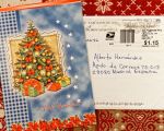 En esta ocasión he cambiado el formato de las fotos respecto de otros años para poder verlas y leerlas más fácilmente en móviles, instagramfacebook (allí las subiré esta tarde). La foto general de arriba con mi arbolito tiene todas las recibidas hasta la fecha este año (10) y alguna más de años anteriores para vestir más la mesa. Como las postales han viajado desde varios países para reunirse en la mesa esta Navidad, en las fotos muestro los sellos. ¡Es el equivalente a su pasaporte! 🙂