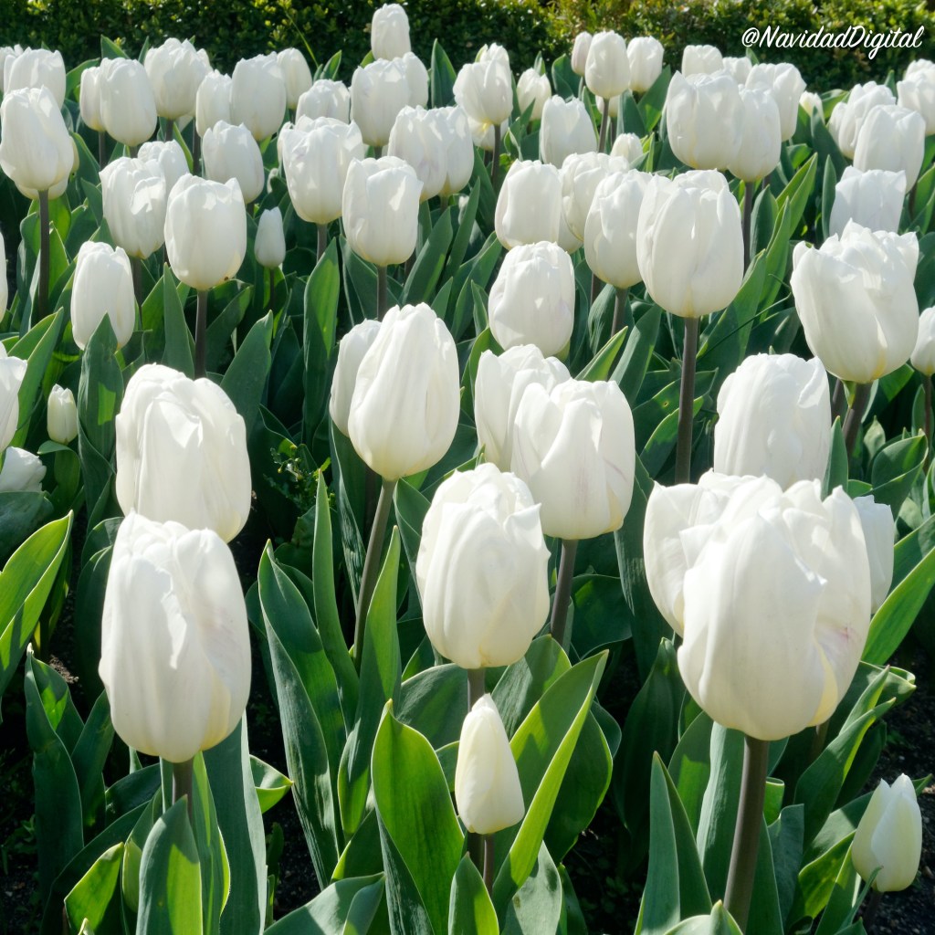 Blanco nieve navideña y verde abeto de Navidad, así son estos tulipanes que crecen en el Jardín Botánico de Madrid, ¡todo un lujo poder disfrutarlos sin tener que volar a Holanda!