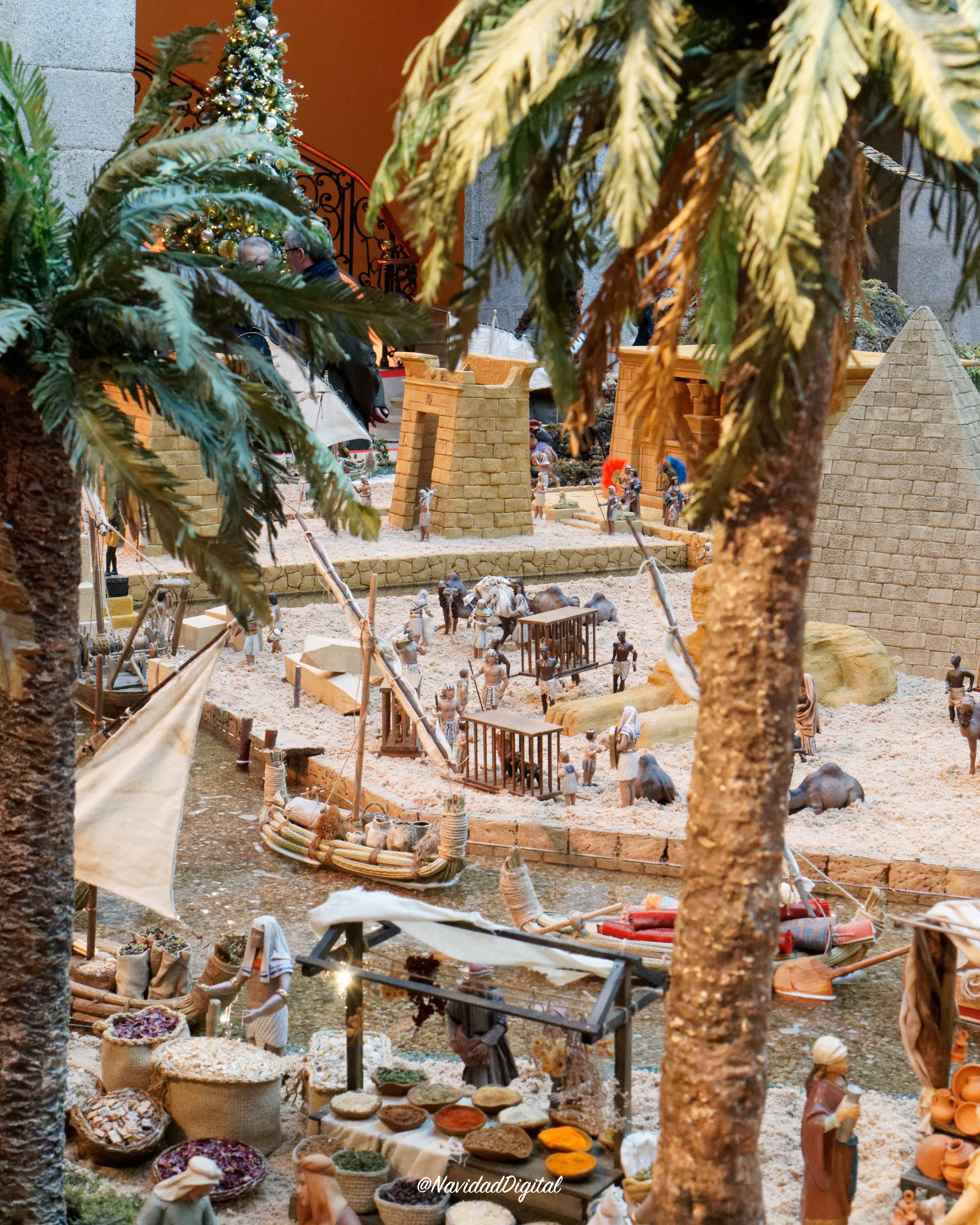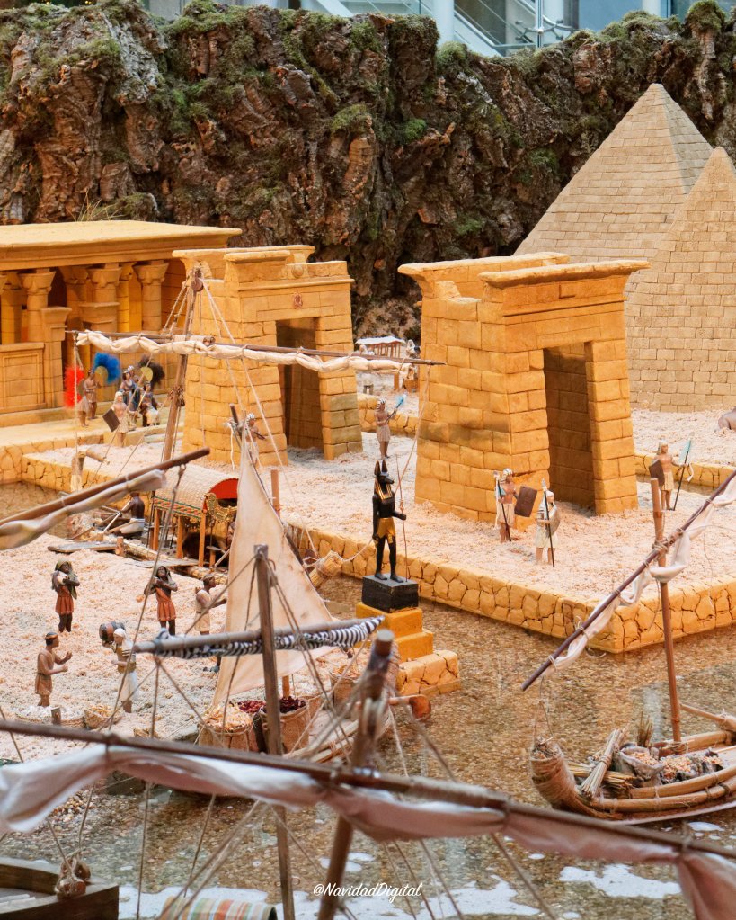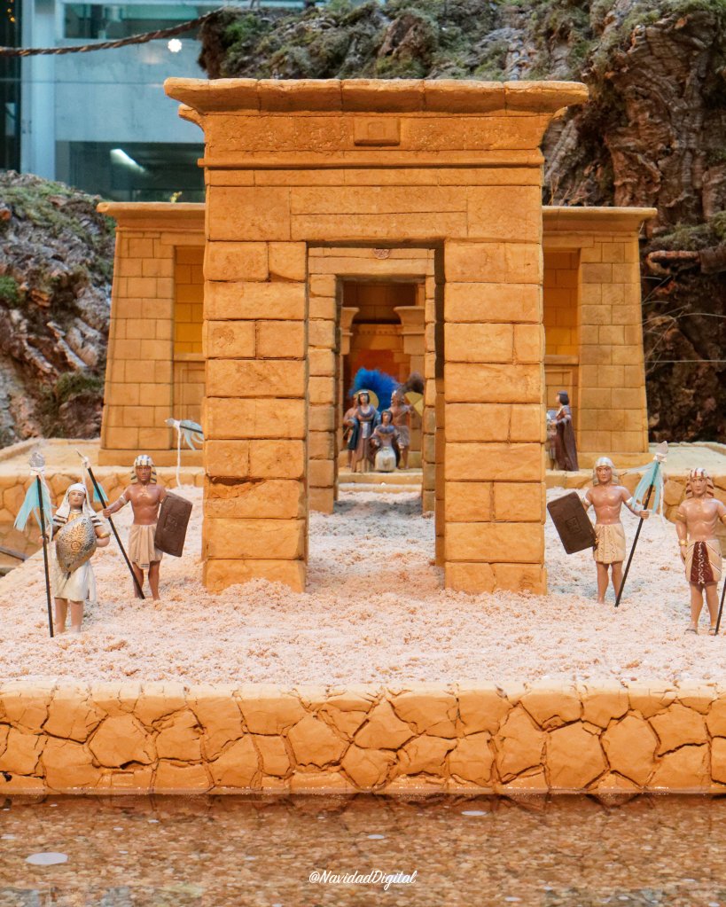 ¡El de este año incluye una réplica del Templo de Debod! Como madrileño siempre hace ilusión cuando un Belén incluye algún edificio o construcción presente en la ciudad. En este caso se trata del monumento donado a España por Egipto en los años 60 con motivo de las ayudas recibidas para salvar el patrimonio de la región de Nubia. Hermano del Templo de Dendur que se encuentra en el Museo Metropolitano de Nueva York por la misma razón.