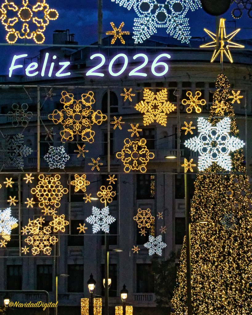 La foto es de la Gran Vía de Madrid, ¡el día de la inauguración de las luces navideñas! De eso hace más de un mes… Me estoy dando cuenta de que no he vuelto a ir al centro con las luces encendidas, ¡ni siquiera he llegado a hacer foto al árbol de Sol estas navidades!, pero es el mismo del año pasado y no le presté mucha atención, ceguera selectiva que llaman, supongo.