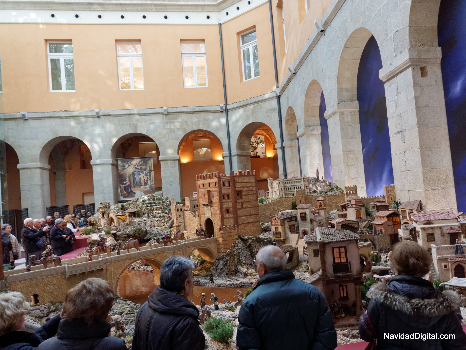 De hecho, el belén con más de 150 metros cuadrados recrea el ambiente de Toledo en el siglo XVI y cuenta con 700 piezas artesanales y numerosos detalles como la herrería con una armadura toledana, el Puente de Alcántara cruzado por los Reyes Magos, el paisaje de molinos o la Catedral de Toledo que preside todo el conjunto desde las alturas.