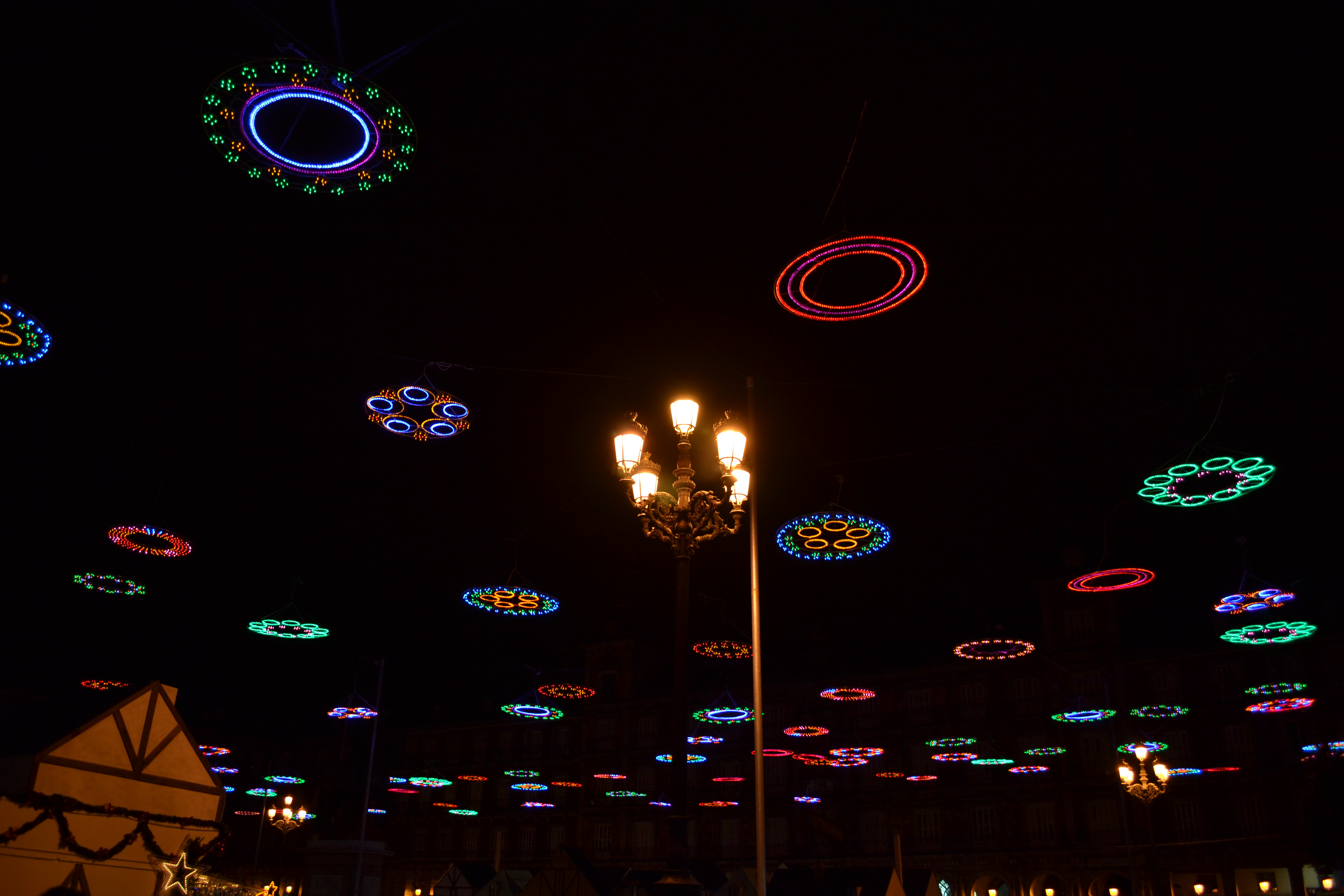 Discos de colores en la Plaza Mayor
